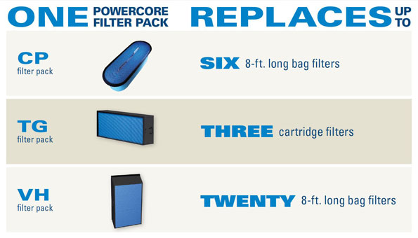 • Torit PowerCore 過濾元件可以替換大部分型號的濾筒及濾袋;